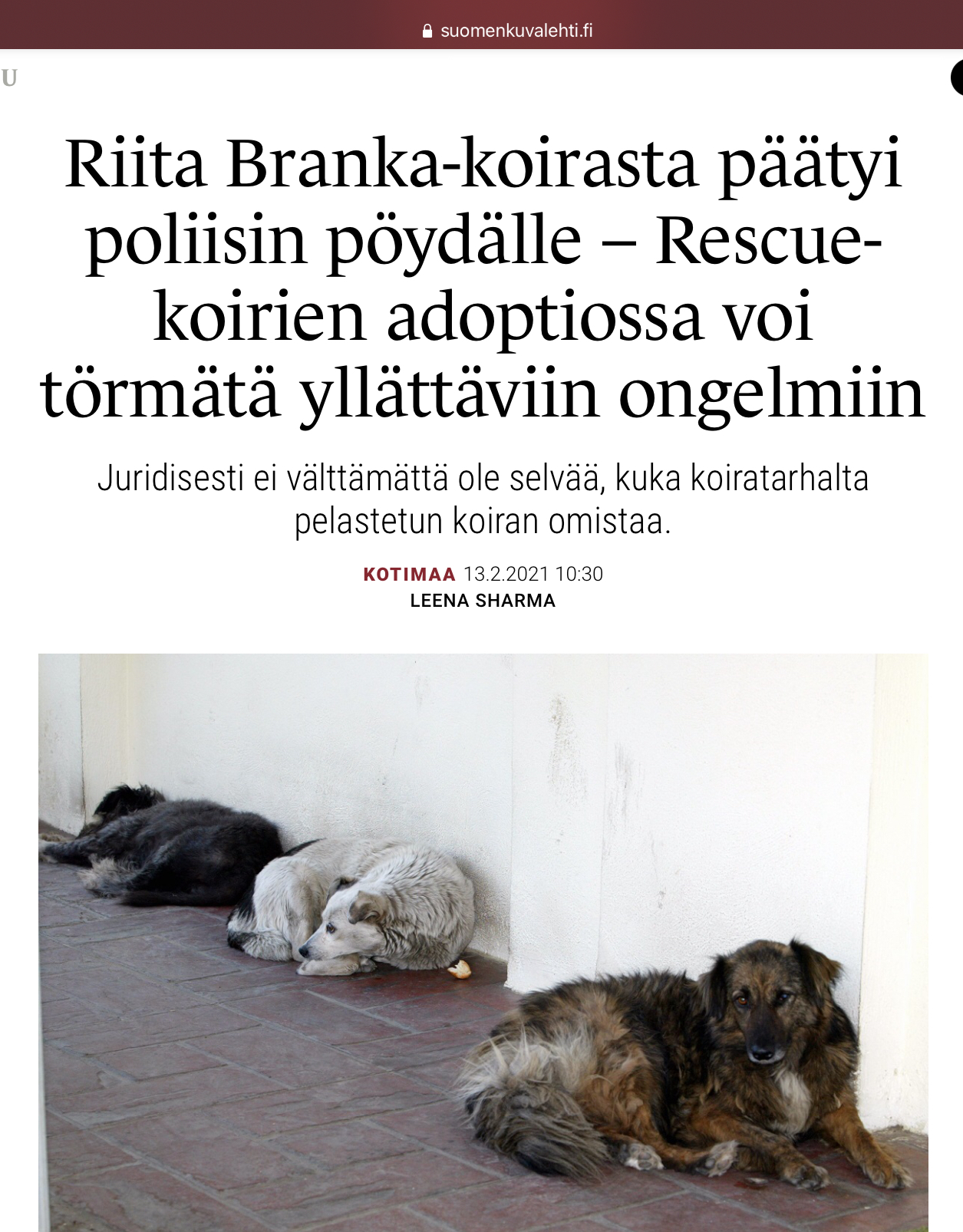 "On kestämätön ajatus, että kotiutunut koira voitaisiin hataran kirjauksen perusteella noutaa milloin vain kotoaan ilman selvää perustetta."